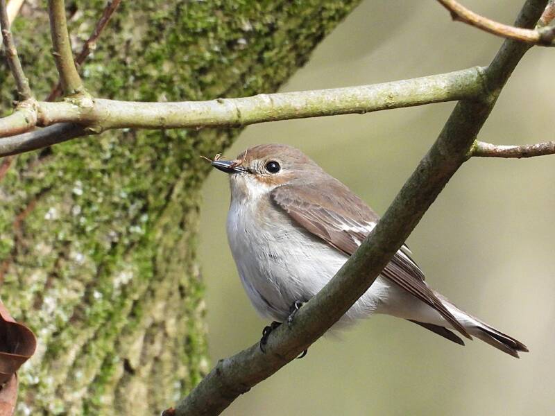 Bonte vliegenvanger > April 2020 - Dit was een van de eerste, wat bijzondere, soorten die ik hier zag. Ik hoorde hem ook steeds fluiten. Bij mijn vorige woning broedde er een in het nestkastje. Dat zelfde kastje heb ik in de buurt van deze hut opgehangen en nog geen uur later kwam er al een bonte vliegenvanger controleren. Dat gebeurt tot nu toe steeds maar waarschijnlijk heeft het mannetje nog geen partner gevonden. We wachten het af.