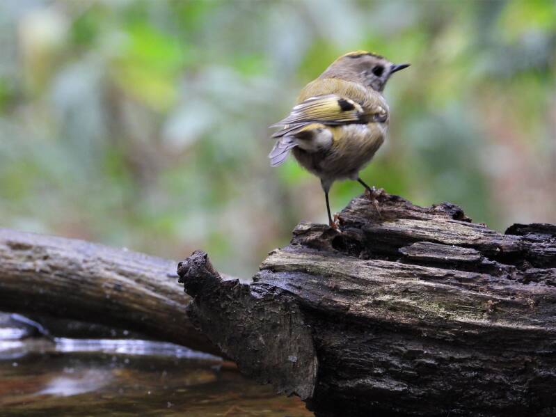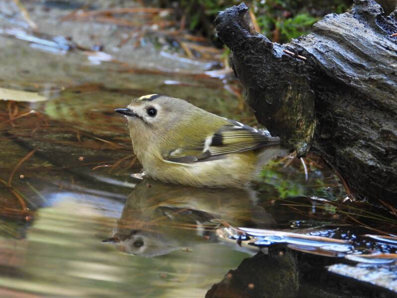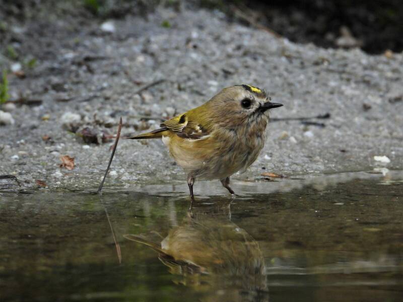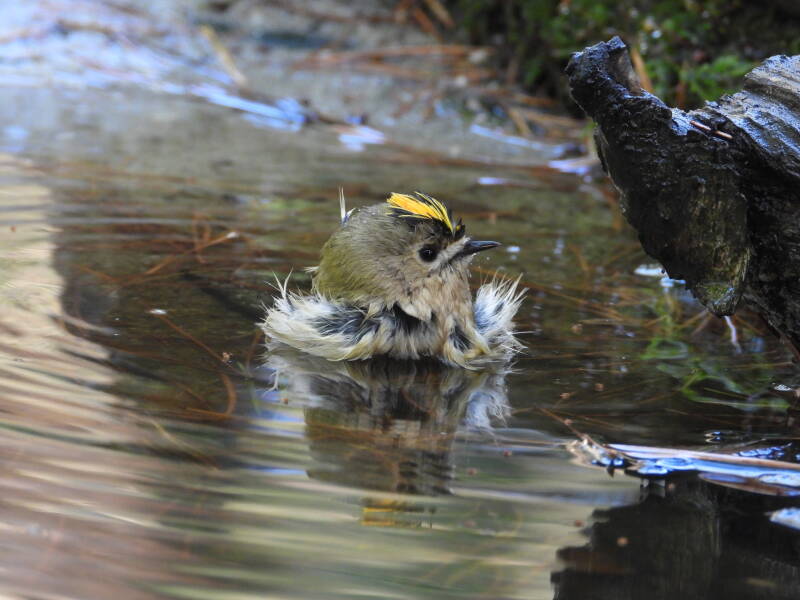 Goudhaantje > Een van de kleinste soort van Nederland. Dit super beweeglijke vogeltje is heel moeilijk te fotograferen. Ze zitten zelden stil maar gelukkig nemen ze ook wel eens een bad. Ze zijn zo grappig met hun fel gele kuif.