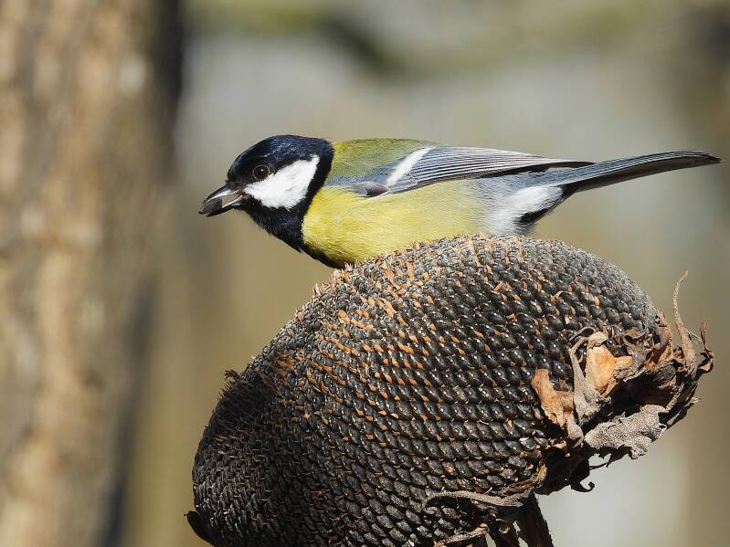 Koolmees> De grootste en meest voorkomen van de familie der meezen. Ook deze was als een van de eersten bij de vogelhut te vinden.