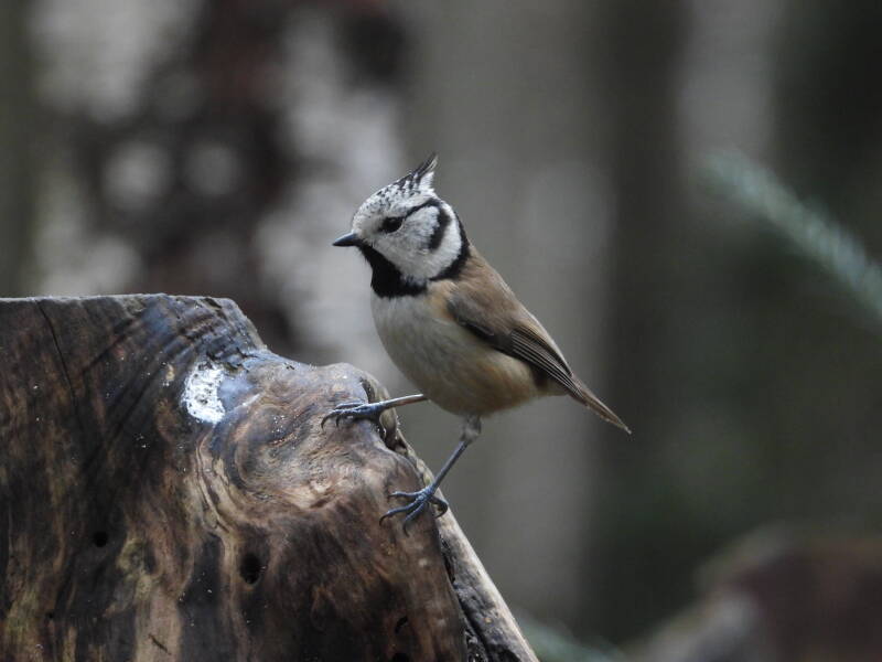 Kuifmees > dit grappige vogeltje heeft iets bijzonders dat andere soorten meezen niet hebben en dat is een kuif. Een mooi kopje met een typisch bruin oogje.