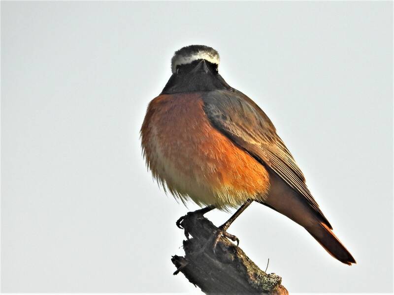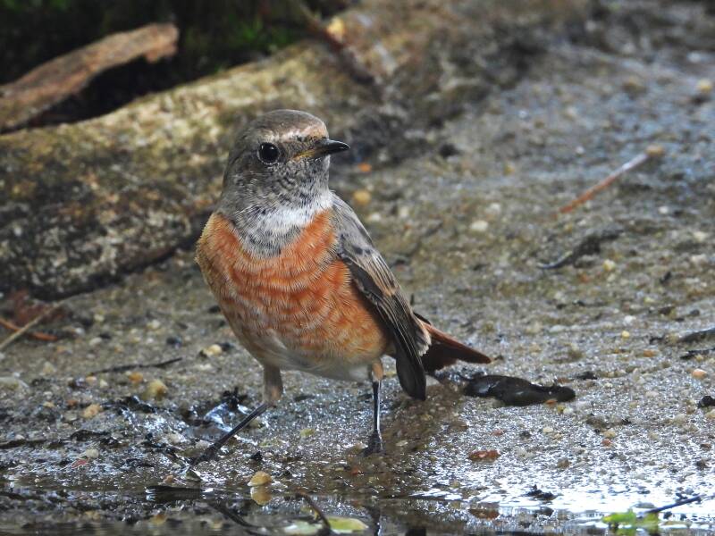 Gekraagde roodstaart > Deze broedvogel is een van de soorten die ik in het voorjaar zou kunnen verwachten. En warempel, op 9 april verscheen dit mooie mannetje plotseling bij de hut. Hij was behoorlijk aan het zingen dus ik hoop dat er een vrouwtje bij komt. Zou mooi zijn als deze mooie soort in de omgeving van de hut een nestplaats zal vinden. Er hangen voldoende nestkastjes in de nabije omgeving.