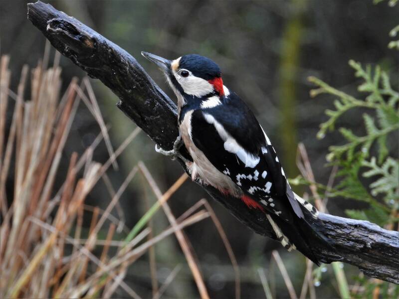 Grote bonte specht > deze prachtige soort is voornamelijk te vinden in bosrijke gebieden, parken en tuinen in de buurt. Hij nestelt meestal in nestholten of nestkast. Hij eet insecten, zaden en noten.