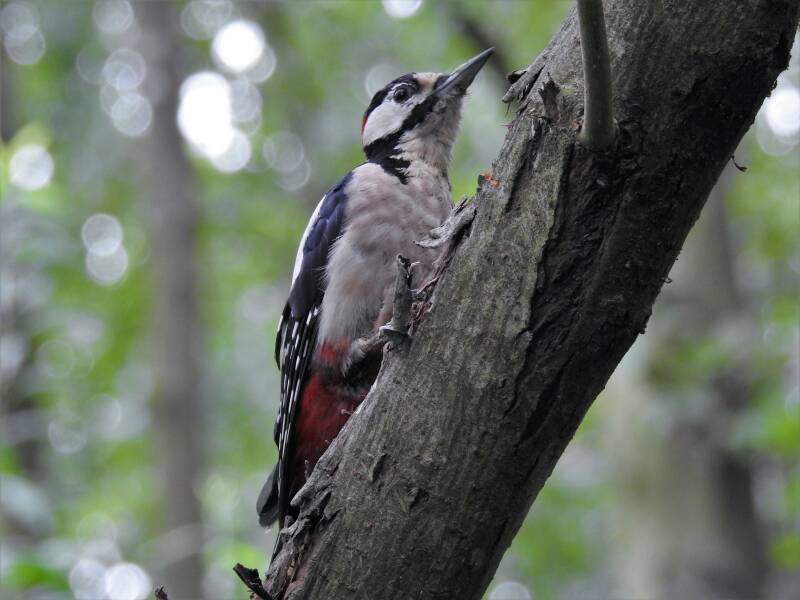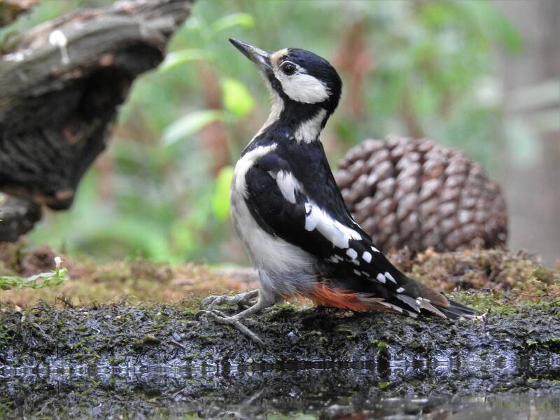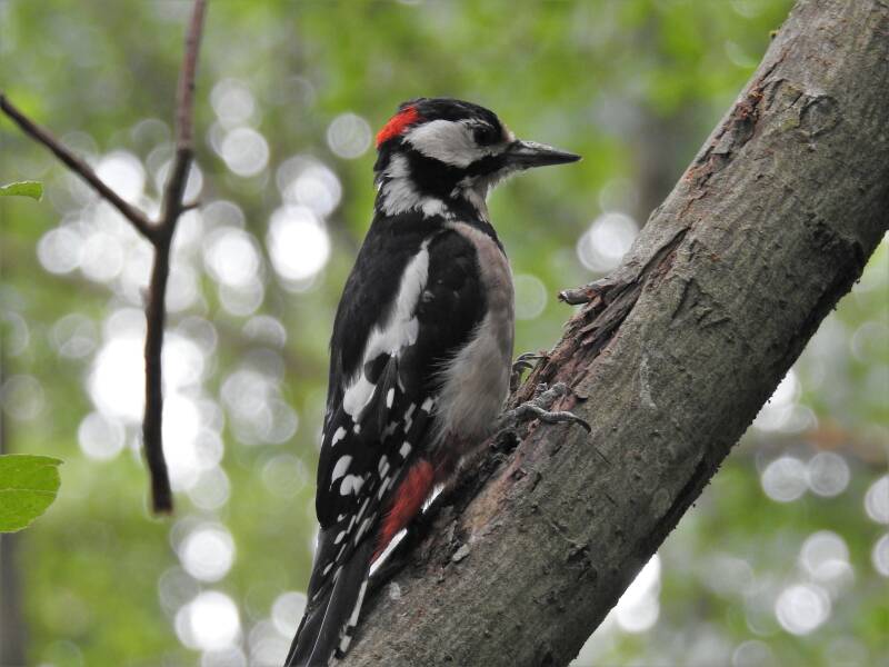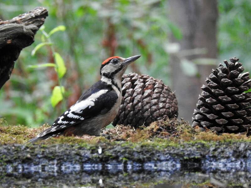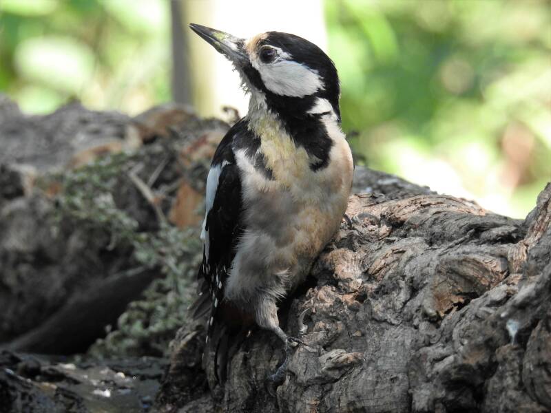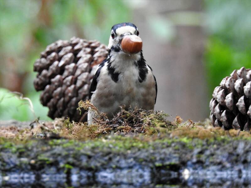 Grote bonte specht > deze prachtige soort is voornamelijk te vinden in bosrijke gebieden, parken en tuinen in de buurt. Hij nestelt meestal in nestholten of nestkast. Hij eet insecten, zaden en noten.