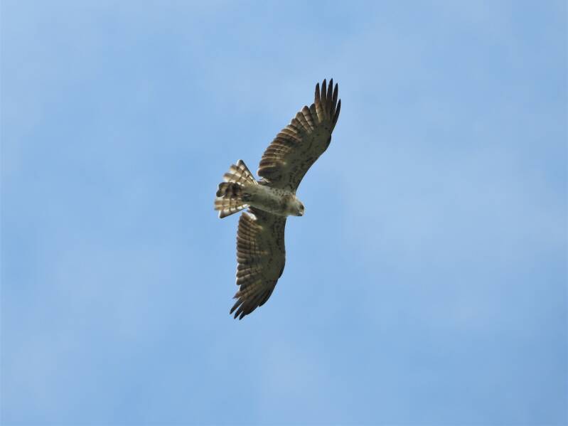 Slangenarend > Op 25 juni 2021 kreeg ik te horen dat er een Slangenarend te zien was op de Strabrechtse heide. Deze vogel heb ik al diverse keren in het buitenland gespot en slecht een keer in Nederland. Dat was in het voorjaar bij Fochteloërveen. Dat was er een met een donkere kop, een ouder exemplaar. De vogel die ik hier te zien kreeg heeft een lichte kop. Dat geeft aan dat het nog een jonge vogel is. Ik ben er meerdere keren geweest om te fotograferen en dit machtige beest te zien. Overigens werd er een paar dagen later nog een exemplaar gezien. Nu bevinden ze zich al een aantal weken in dit gebied.