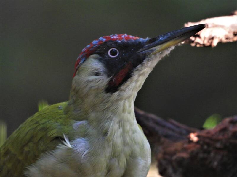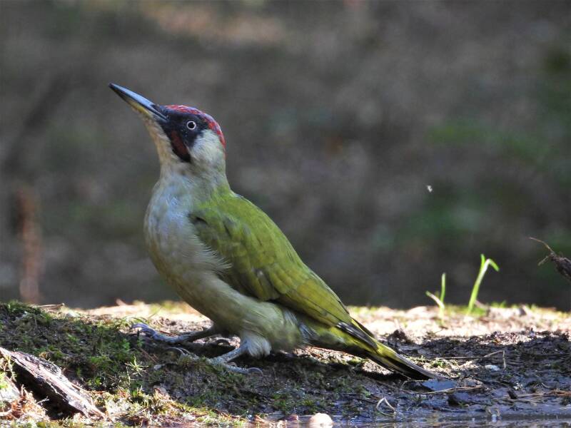 Groene specht > Ik zag vaak op facebook dat deze regelmatig deze hut bezoekt en ook ik had het geluk dat ie op bezoek kwam. Wat is het een schitterende vogel.